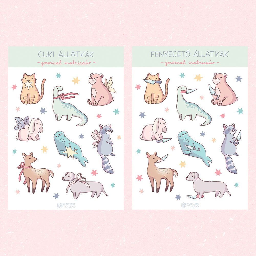 „Cuki/fenyegető állatkák” journal matricaív